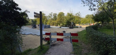 Op bovenstaande foto, gemaakt op 2 oktober, zag je hoe ver de metamorfose al was! De huidige parkeerplaats kreeg een halfverharding en duidelijke gemarkeerde vakken. De fietsenstalling was alleen even dicht op moment dat de stalling een nieuwe ondergrond kreeg.